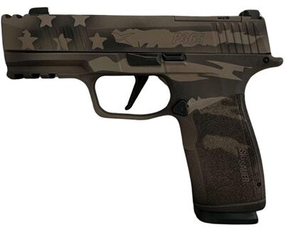 P365 XMACRO COMP 9MM 3.1”BBL (2)17RD DISTRESS STARS & STRIPE
