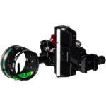 Slider sight allows to set each Accu-Click at a specific 20, 30, 40 yards so the slider stops where you want it. A 45 degree rear facing sight tape allows easy recognition of the sight pointer. Adjustable red elevation tension lever provides own personal choice of how easily the sight slides along the elevation bar. Features all axis leveling capabilities from the fire adjustments NO shims needed to the second and third axis leveling on the head of the scope adjustment. Superior windage dovetail guide system. Comes with AV-31 scope has a 1 3/8″ or 31MM inside diameter. Fire pin equipped tough CNC machined pins and a new method of fiber wrapping technology, creating one of the brightest fiber optic pins. The Picatinny in-line sight mounts your sight to the front of your bow for better balance and create a super strong and durable connection so functional is the ability to adjust the sight in or out to one of three positions to match the peep sight to the scope housing or up or down to one of three positions on the bow riser for enhanced elevation adjustments. Adjustments with each picatinny connection can be done with one screw and snugged down slightly with a hex key wrench.
