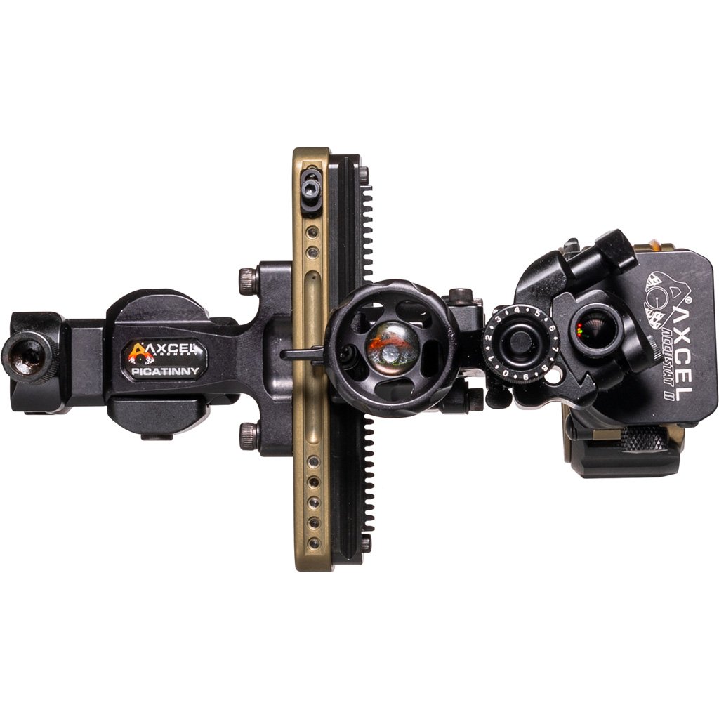 The Axcel LANDSLYDE Picatinny Slider Sight, paired with the AccuStat II Micro Pin, is a state-of-the-art tactical bowhunting sight designed for the archer who demands the best. It features a robust Picatinny mounting system for stability, a rapid adjust knob for swift elevation changes, and smooth gear action for quiet movement. True 1st/2nd/3rd axis adjustments provide unparalleled accuracy. The sight also includes a removable sight block and two adjustable pointers for meticulous aiming. Crafted with 8 double-sided metal scales, the LANDSLYDE offers 16 total configuration choices to cater to various shooting conditions and preferences, all while being durable enough to withstand the rigors of outdoor use.