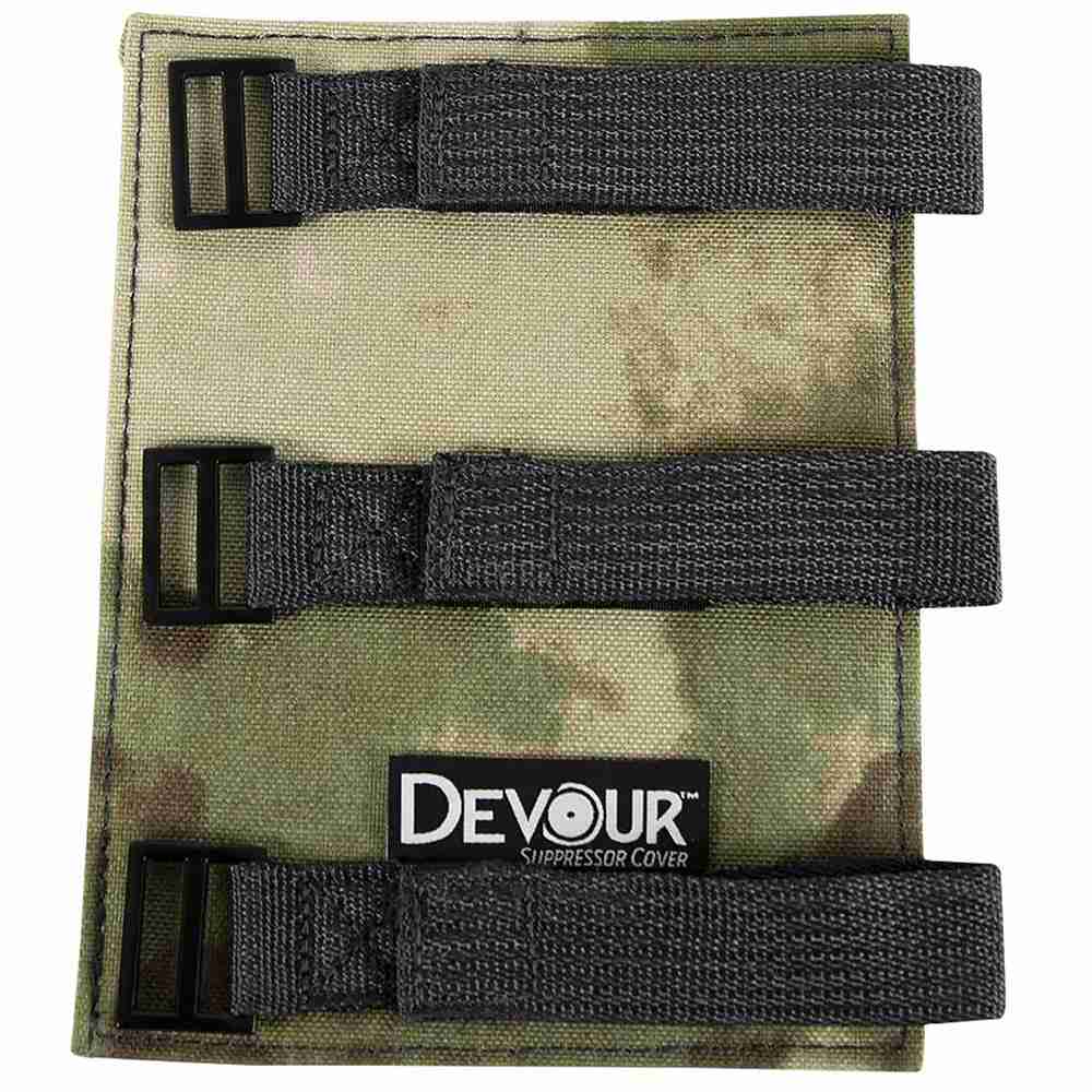 The Devour Suppressor Cover protects yourself and your gear against suppressor heat. The Devour cover also helps to mitigate optical mirage. As an added benefit it protects your silencer from scratches and dings that come with normal use. It is easy to put on allowing you to install or remove a suppressor while still hot. This prevents you from getting burned while letting you shoot comfortably from different positions.The Devour Suppressor Cover features include an industrial silica-coated non-slip design held tight with adjustable straps. The carbon fiber felt is e-Glass 1800 F rated and a noncombustible material that is ideal for high-temperature protection.