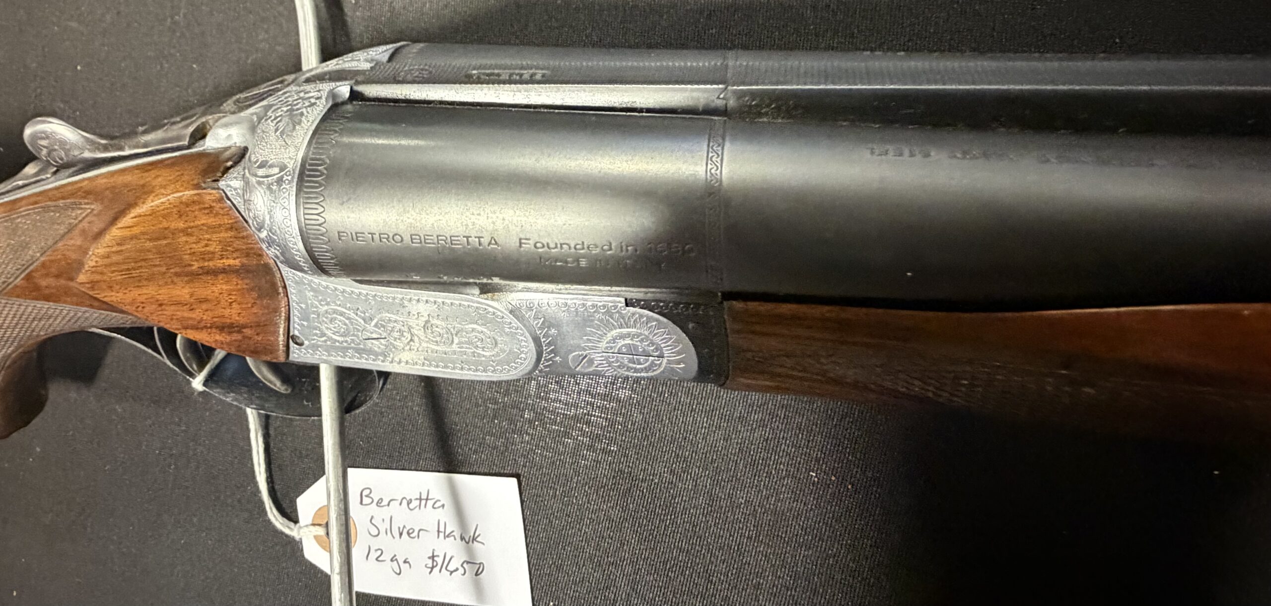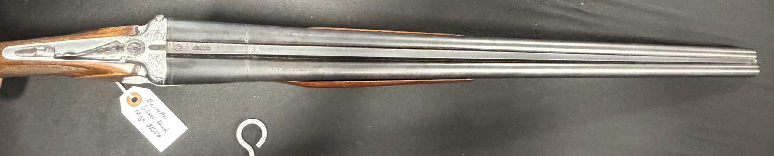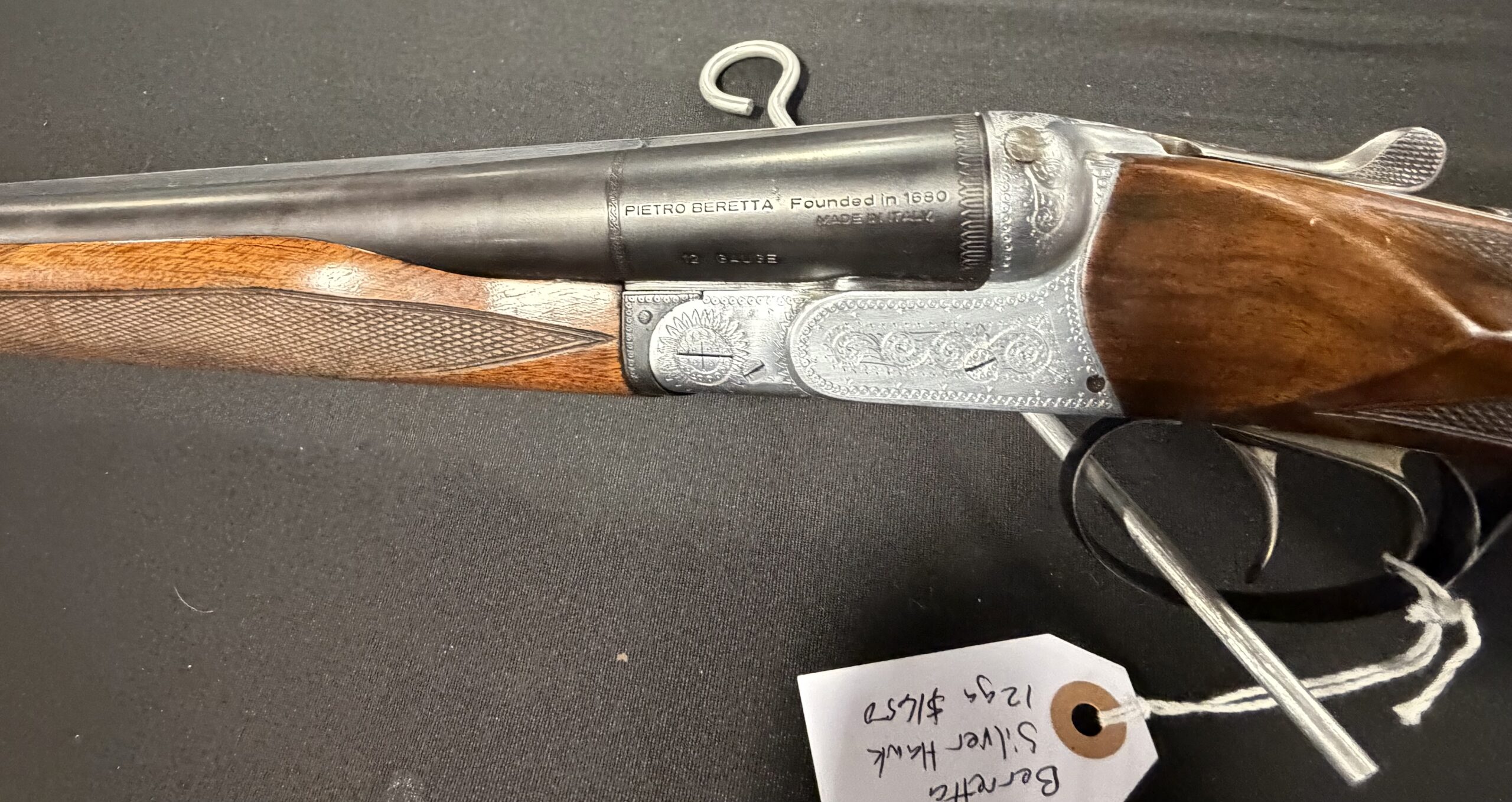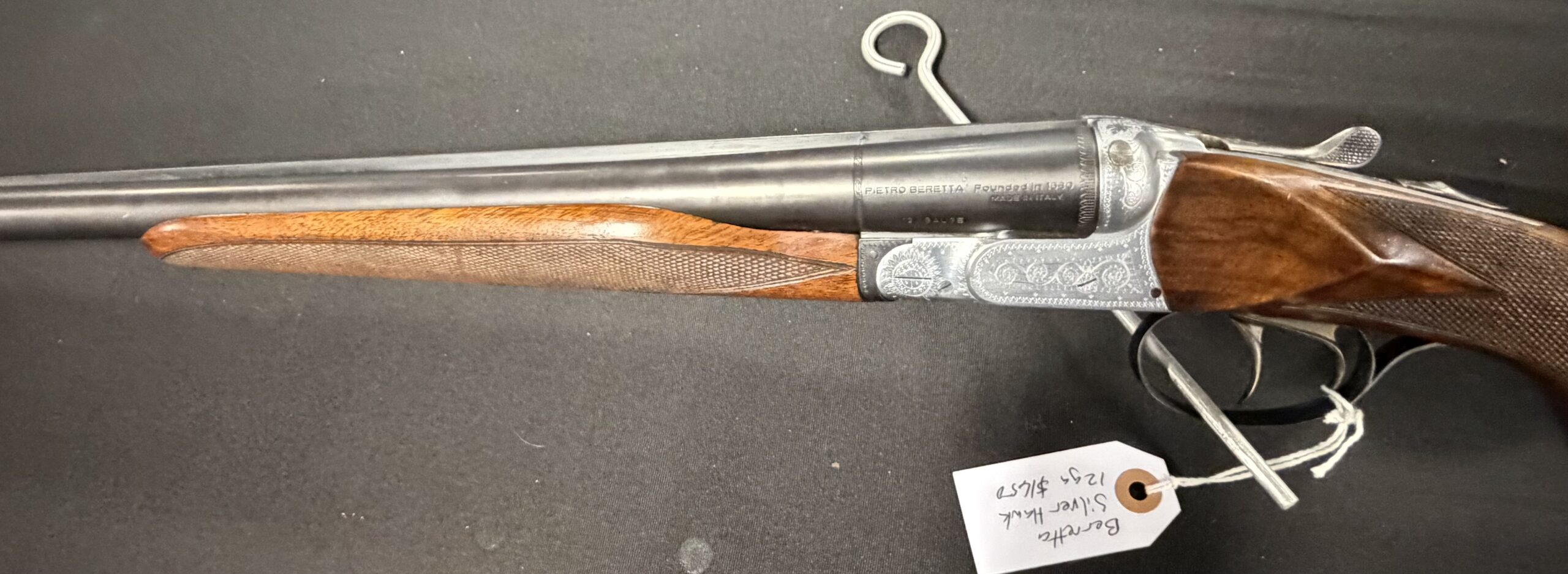 Beretta Silverhawk side by side, 12ga 28″ Barrels, 2.75″ chambers, fixed MOD and FULL. Double triggers and extractors. Factory finish on both wood and metal. Gun is in excellent condition with bore clean and bright. Wood has very little wear and looks great! A premium Italian-made, side-by-side shotgun known for its lightweight, fast-handling, traditional design. Featuring a nickel-chromium-molybdenum steel action with a satin finish. Comes from a private collection and are hard to find as these were manufactured in the 50’s and 60’s. Wood and finish is 85-90%. LOP is 14.5″ as pictured. Finish is original. Beretta side by sides are hard to find and never go this cheap.  Good bores, action is nice and tight. Make a great classic shooter and perfect for the Beretta enthusiast!