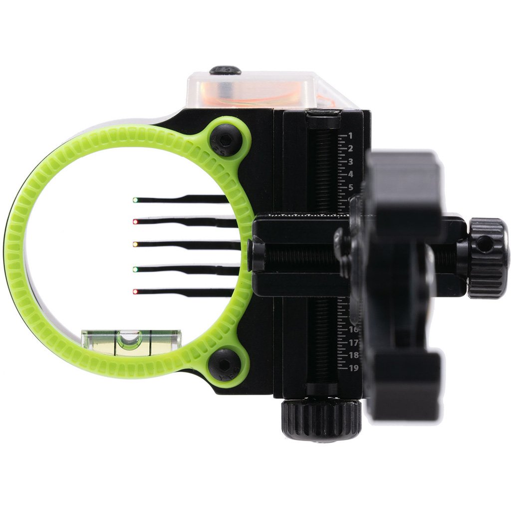 The Black Gold Revenge Sight integrates a 2-inch guard with a 5-pin design, each featuring .019″ micro dots for refined aim. It’s lightweight at 8 oz, enabling ease of handling. This sight delivers precise adjustability through vertical and horizontal gang click micro-adjustments, and individual pin adjustments, with the added benefit of adjustable 2nd and 3rd axis. The all-metal construction is durable, and the micro groove design ensures pin protection.