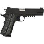 The Colt 1911 CCU Rail Pistol in 9mm is crafted for tactical versatility and precision shooting. Featuring a 5-inch barrel and a robust steel frame with a matte black DLC finish, this pistol is built for durability. The integrated M1913 Picatinny rail allows for easy mounting of accessories, while the Novak front and rear night sights ensure quick target acquisition in low-light environments. Designed for enhanced control, it includes an ambidextrous extended thumb safety, beavertail grip safety, and an extended magwell for seamless reloads. The G10 checkered gray grips with scallop texture provide a secure and ergonomic grip, making it an excellent choice for professional and defensive use.