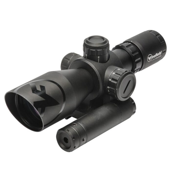 No matter how intense the situation the Firefield Barrage 2.5-10×40 Riflescope with Green Laser is the ideal ready-for-anything optic. Featuring a 2 piece mount design IPX4 waterproof rating and bullet drop compensation reticle for 55gr .223 Barrage Riflescopes boast an aircraft-grade 6061-T6 black anodized aluminum tube. While Barrage Riflescopes are deigned to handle your toughest engagements it?s the Barrage?s fully multi-coated AR green scratch-resistant anti-reflective glass precision 5mW 532 nm Class IIIA green laser illuminated red/green Mil-Dot reticle and 100-hr battery life that get you on target and keep you there even in low light.