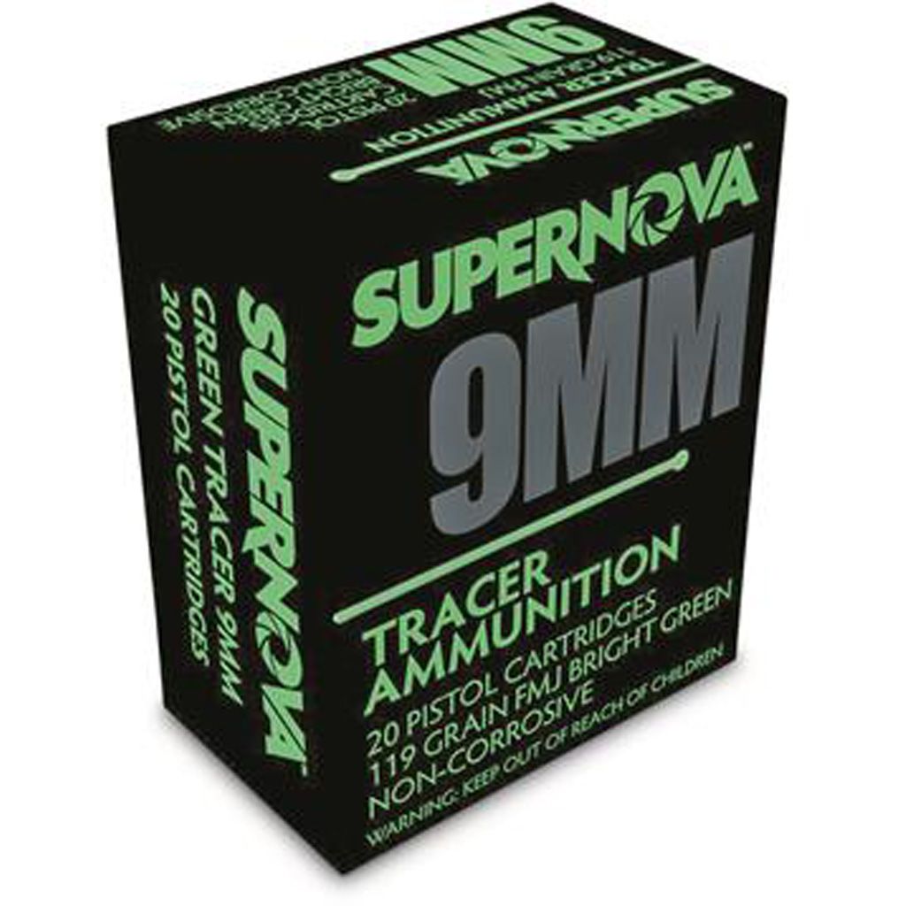 Supernova Tracer Pistol Ammunition 9mm 119 gr. FMJ Green Tracer 20 rd.